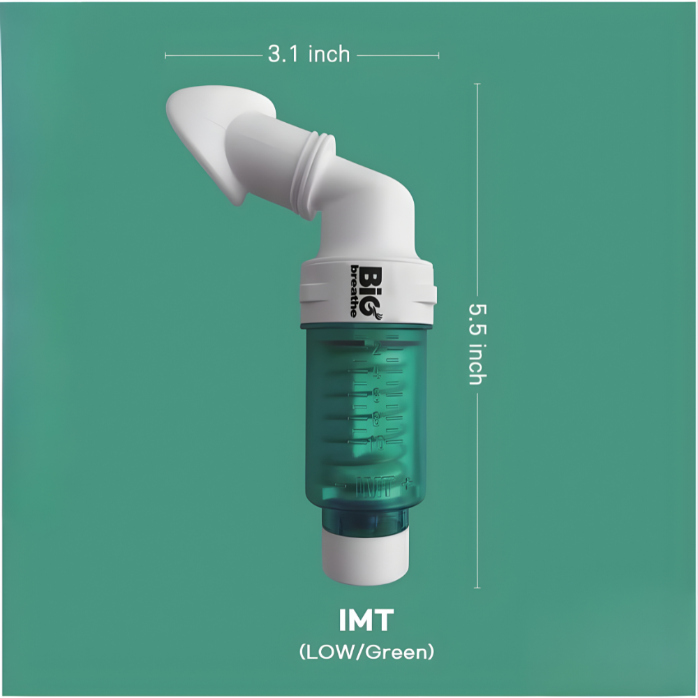 El Bigbreath IMT Low (Verde) es un dispositivo de entrenamiento respiratorio diseñado específicamente para fortalecer los músculos inspiratorios y expandir la capacidad pulmonar. Al proporcionar una resistencia controlada durante la inhalación, este equipo actúa como un "gimnasio" para tu diafragma. Su nivel Low (Bajo) lo convierte en la opción ideal para usuarios que utilizan estos dispositivos por primera vez o personas con pulmones debilitados que buscan recuperar su salud respiratoria de forma segura y progresiva.