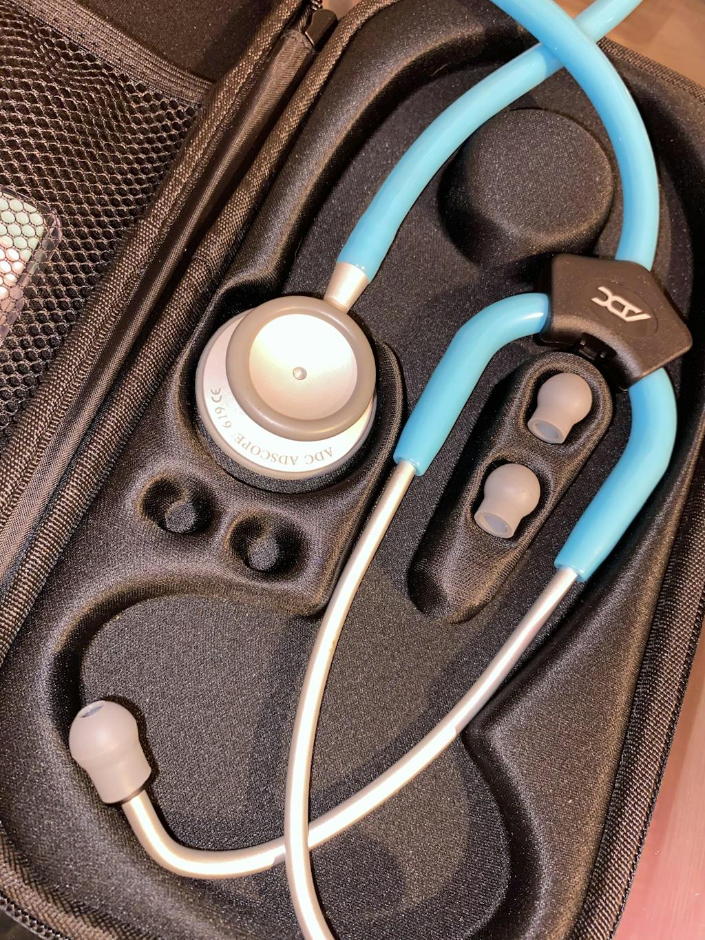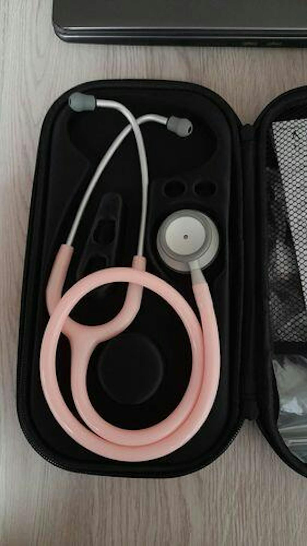 Los auriculares para médicos cuentan con un yugo de refuerzo moldeado en el tubo flexible de PVC de 22 "